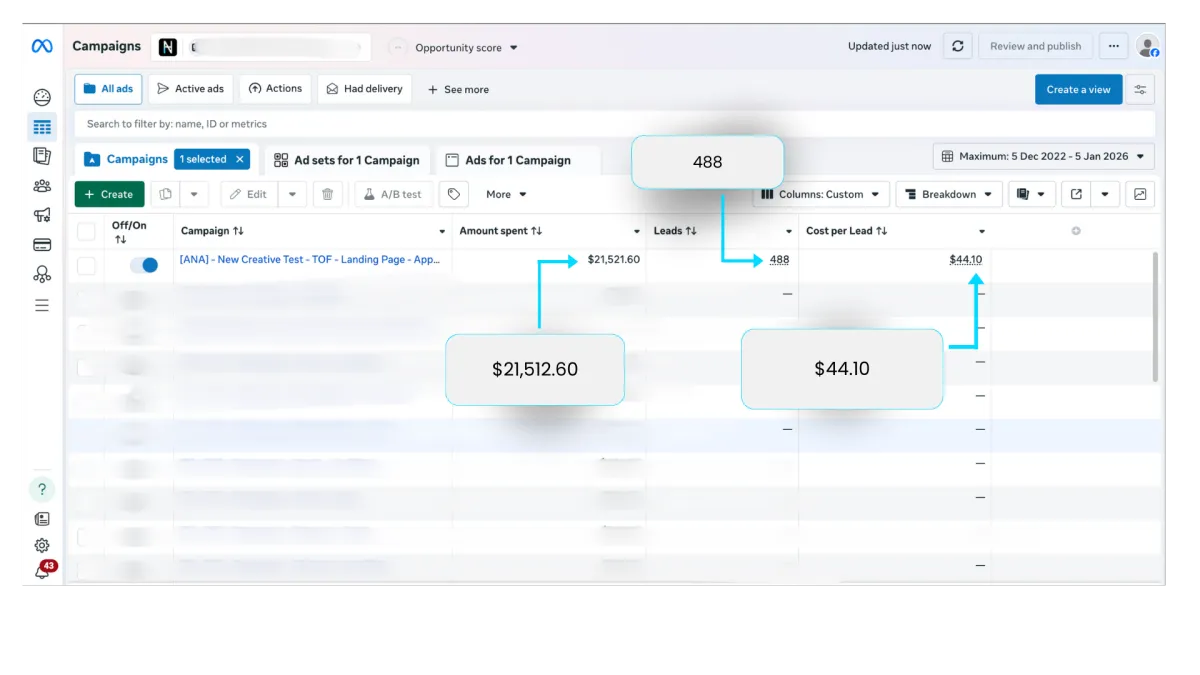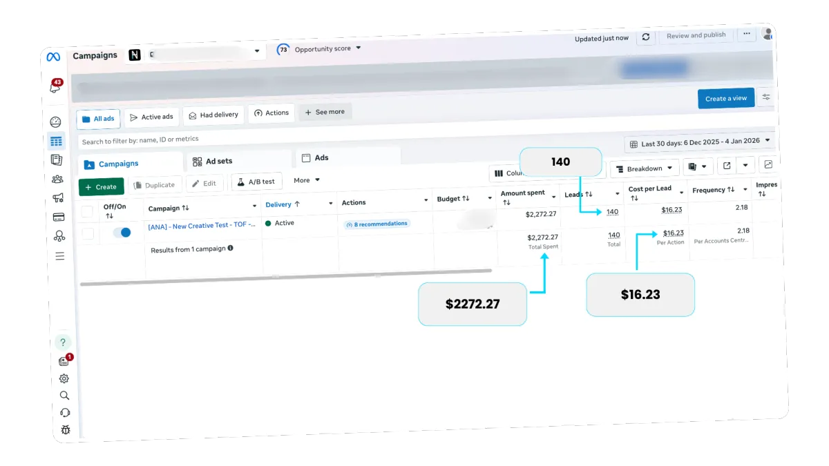 After we came in, fixed the funnel and made the customer experience more enjoyable, after testing creatives, offers and ad copy, all we needed was one campaign to scale the brand to the next level!